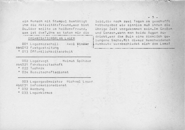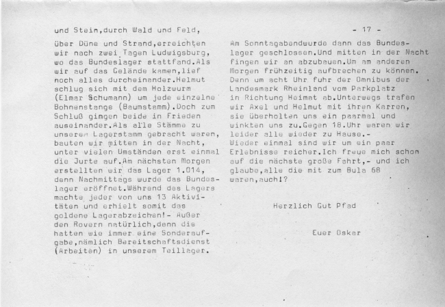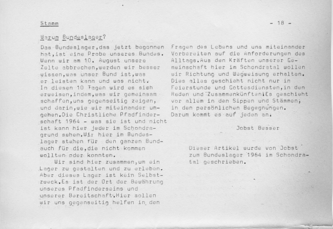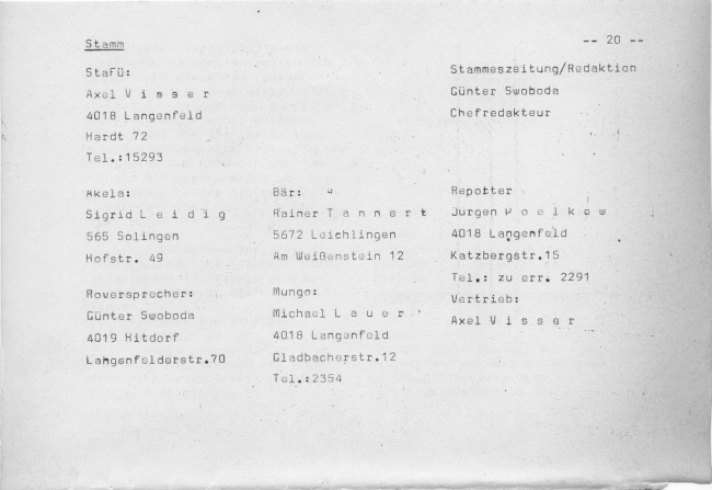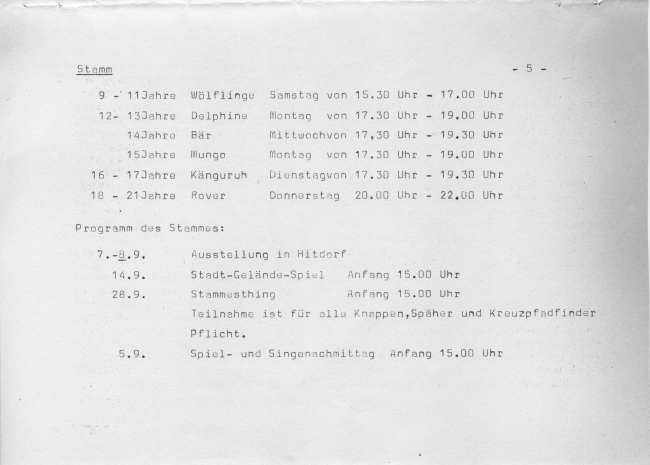 Gruppen im Stamm:Wölflinge: Sigrid Sippe Bär: RainerSippe Bär: MichaelRover: Günther